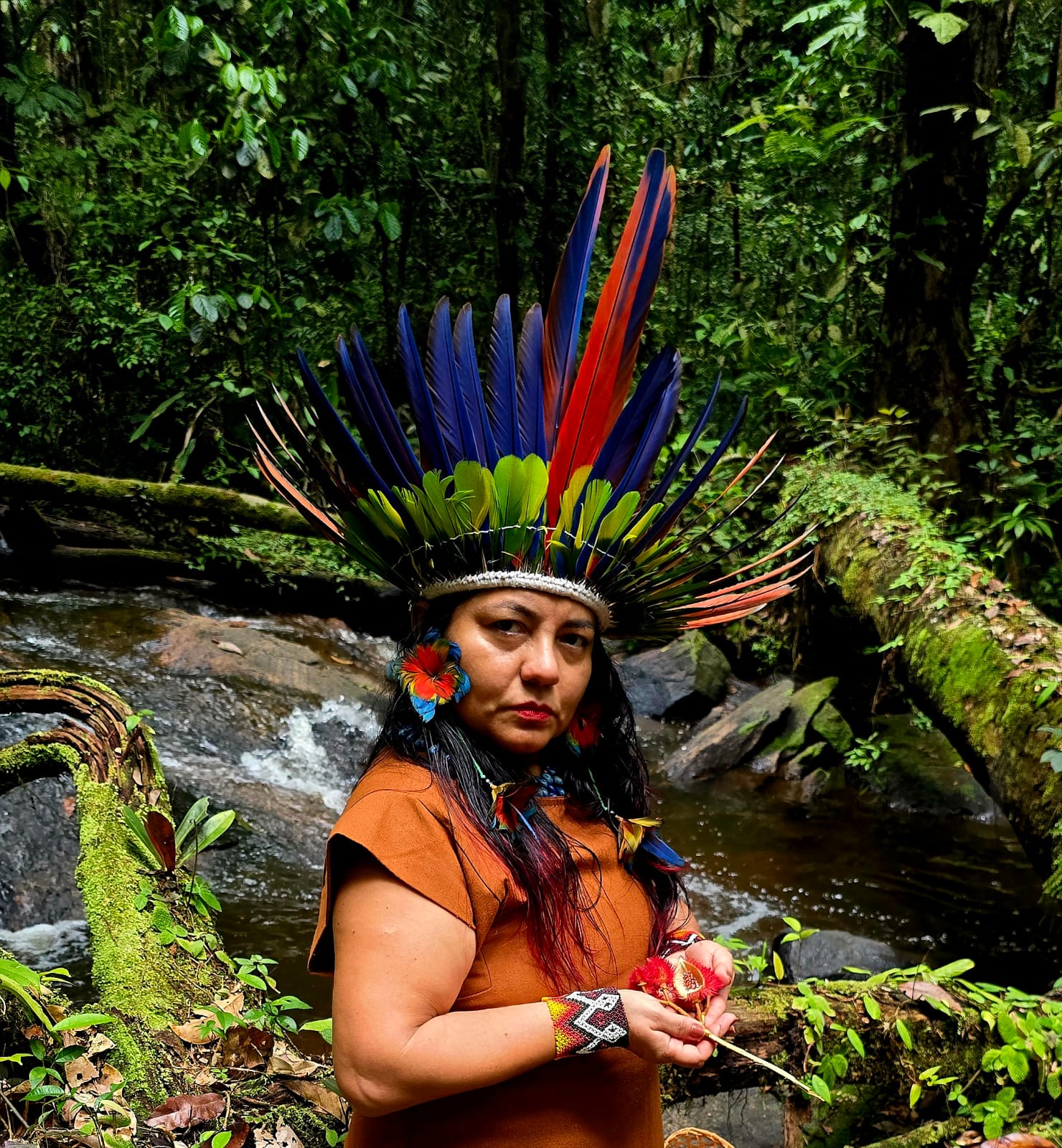 Inspirada na cultura amazônica e nos saberes dos povos originários, a apresentação reúne contação de histórias e declamação de poesias autorais. A atividade conduz o público por narrativas que evocam memórias, identidades e caminhos ancestrais, em uma experiência participativa com elementos simbólicos da cultura indígena e ribeirinha.